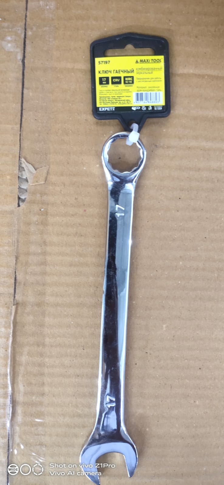 Комбинированный ключ полированный с хромированным покрытием — на одном конце тела расположен рожковый ключ, на другом — накидной. Оба имеют одинаковый размер. Материал: Хромванадиевая сталь."