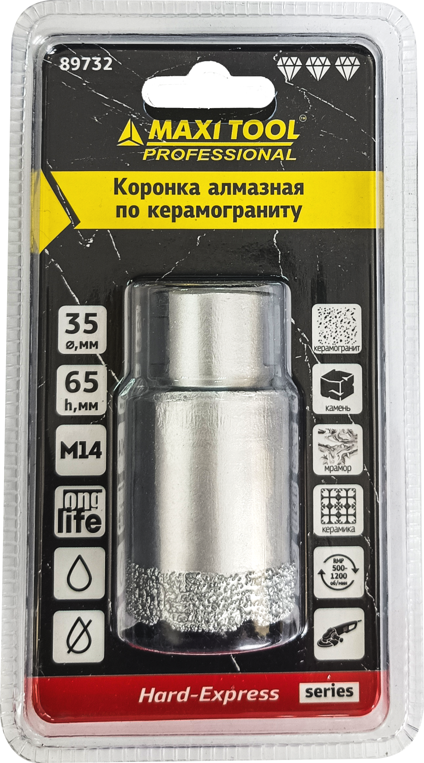 Для безударного сухого и влажного сверления с помощью всех видов УШМ в керамограните, камне (искусственном и натуральном), кафеле и керамической плитке.