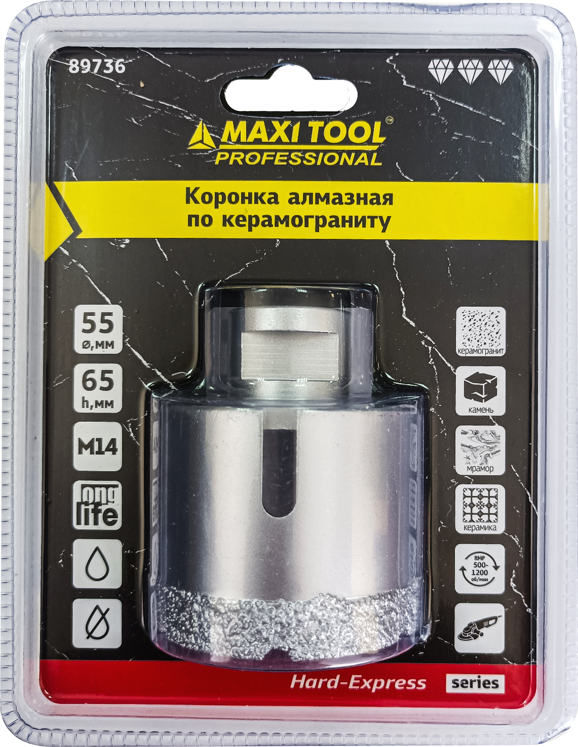 Для безударного сухого и влажного сверления с помощью всех видов УШМ в керамограните, камне (искусственном и натуральном), кафеле и керамической плитке.