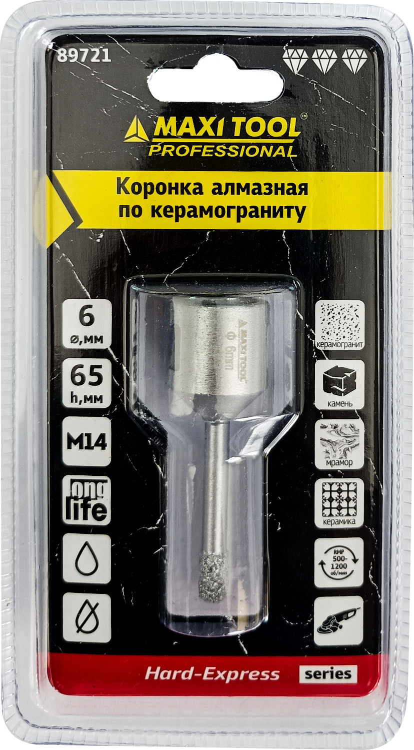 Для безударного сухого и влажного сверления с помощью всех видов УШМ в керамограните, камне (искусственном и натуральном), кафеле и керамической плитке.