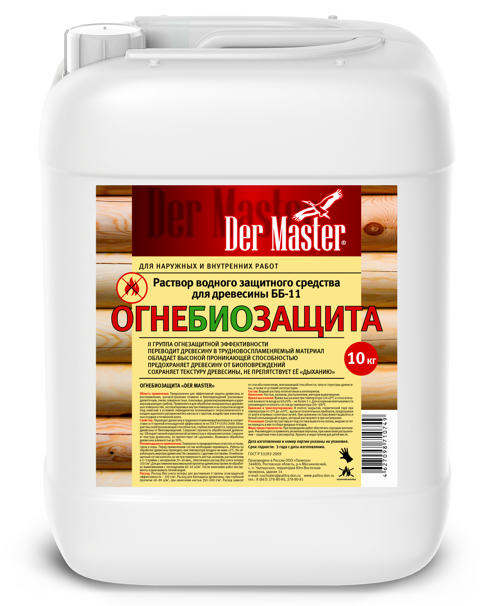 Состав огнебиозащитного раствора представляет собой жидкий раствор биоцидов, которые препятствую образованию плесени и грибов на различных поверхностях, а также служат надежной защитой от огня.
