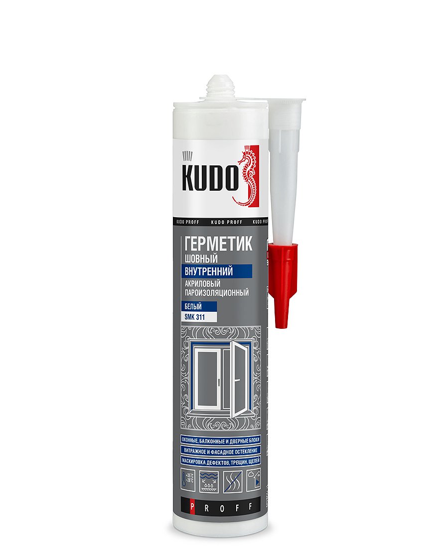 Акриловый шовный герметик для окон и дверей KUDO® SMK 311 прекрасно подходит для устранения и маскировки дефектов: швов, трещин, щелей, пустот в деревянных, кирпичных и бетонных стенах.